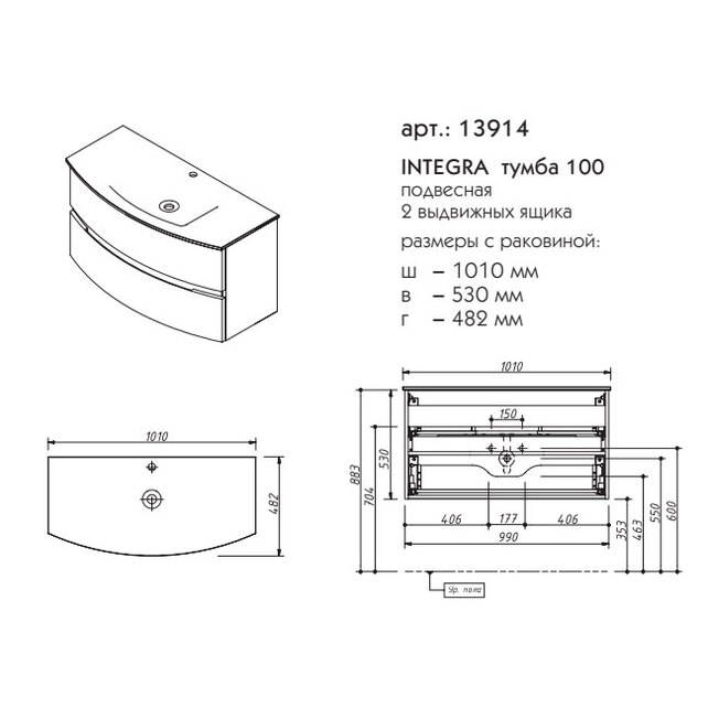 Тумба под раковину Caprigo Integra 100 см 13914 цвета разные