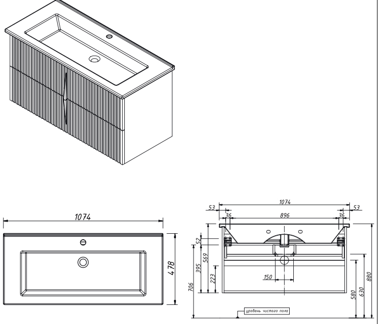 Тумба под раковину Caprigo Novara 105 см эмаль 34914 цвета разные