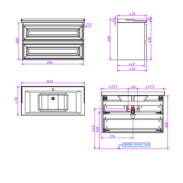 Тумба под раковину Caprigo Ponza A 100 см 2ящ 13524 цвета разные