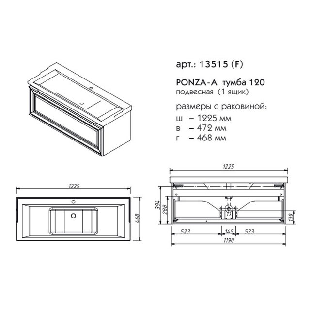 Тумба под раковину Caprigo Ponza A 120 см 13515 цвета разные