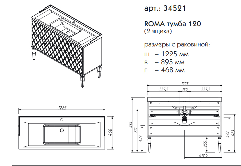 Тумба под раковину Caprigo Roma 120 см ящики 34521 цвета разные