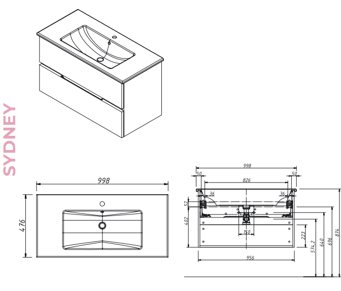 Тумба под раковину Caprigo Sydney 100 см 35817 цвета разные
