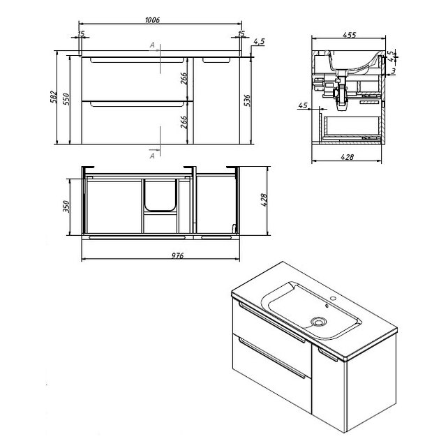 | Система хранения | 2 ящика, 1 дверца слева/ справа |