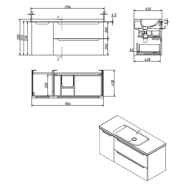 | Система хранения | 2 ящика, 1 дверца слева/ справа |