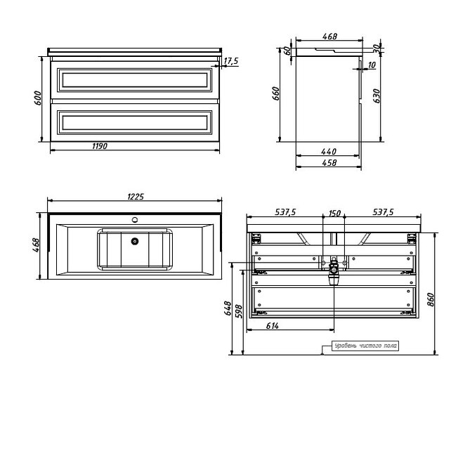 Тумба под раковину Caprigo WALES 120 см 2ящ 36015 цвета разные
