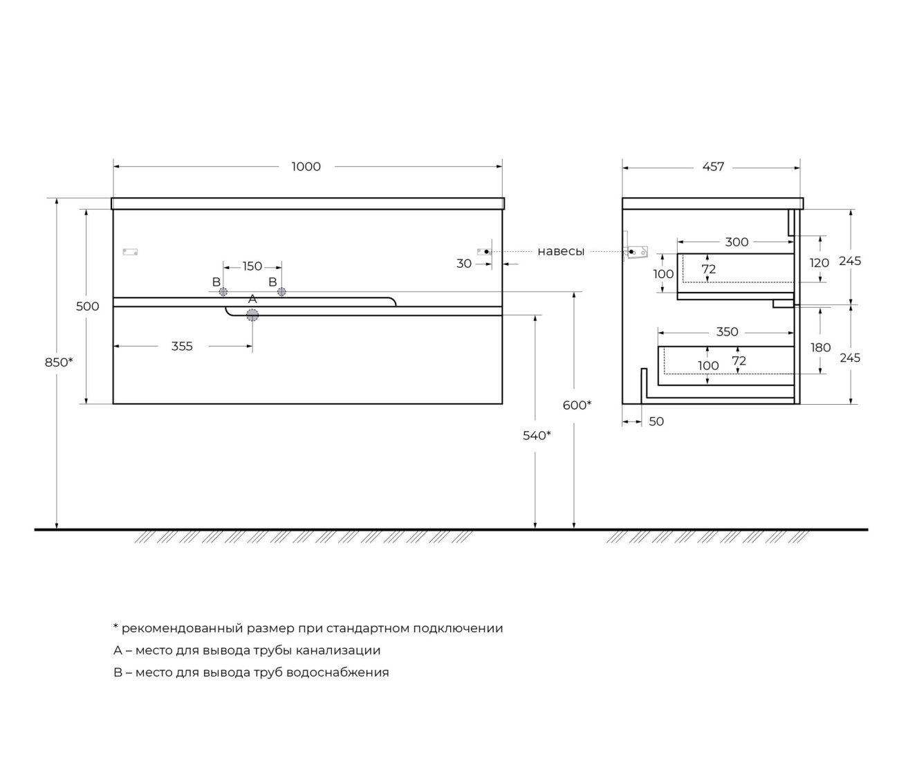 | Раковина | Керамика чаша слева-справа/ приобретается отдельно |