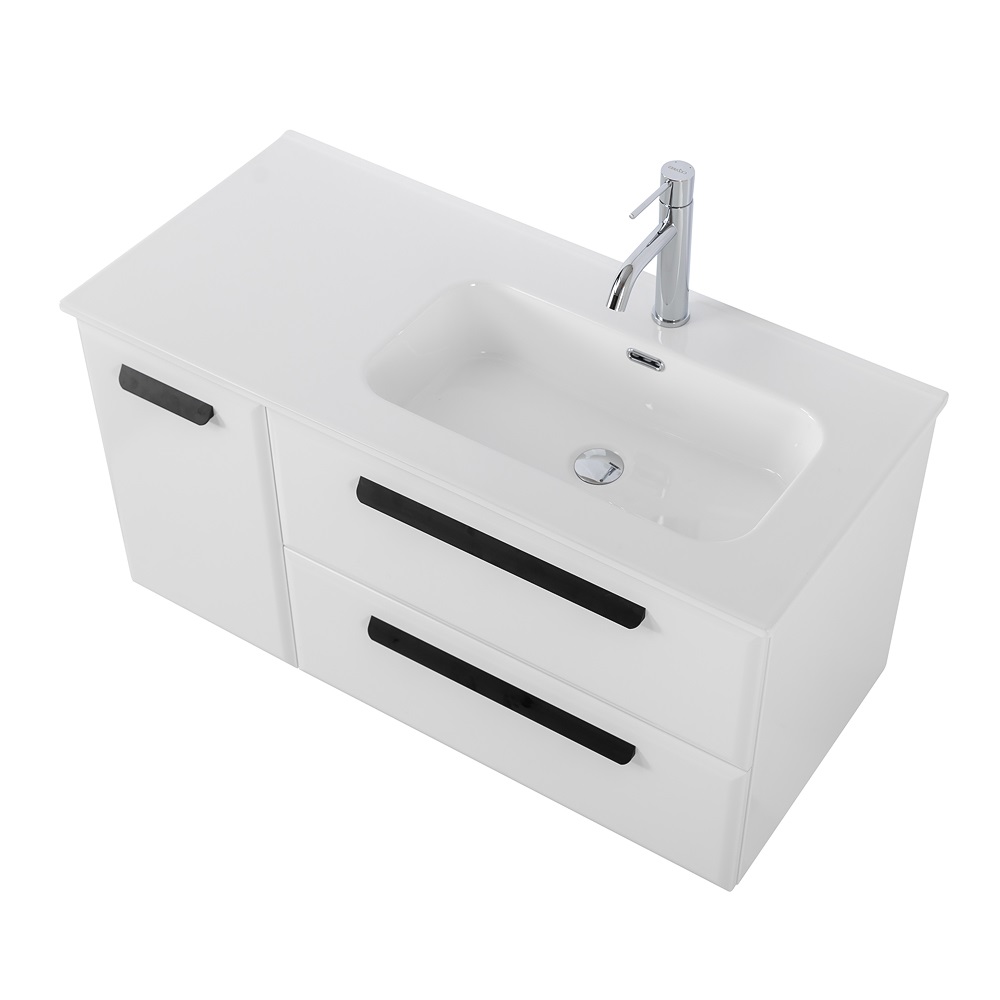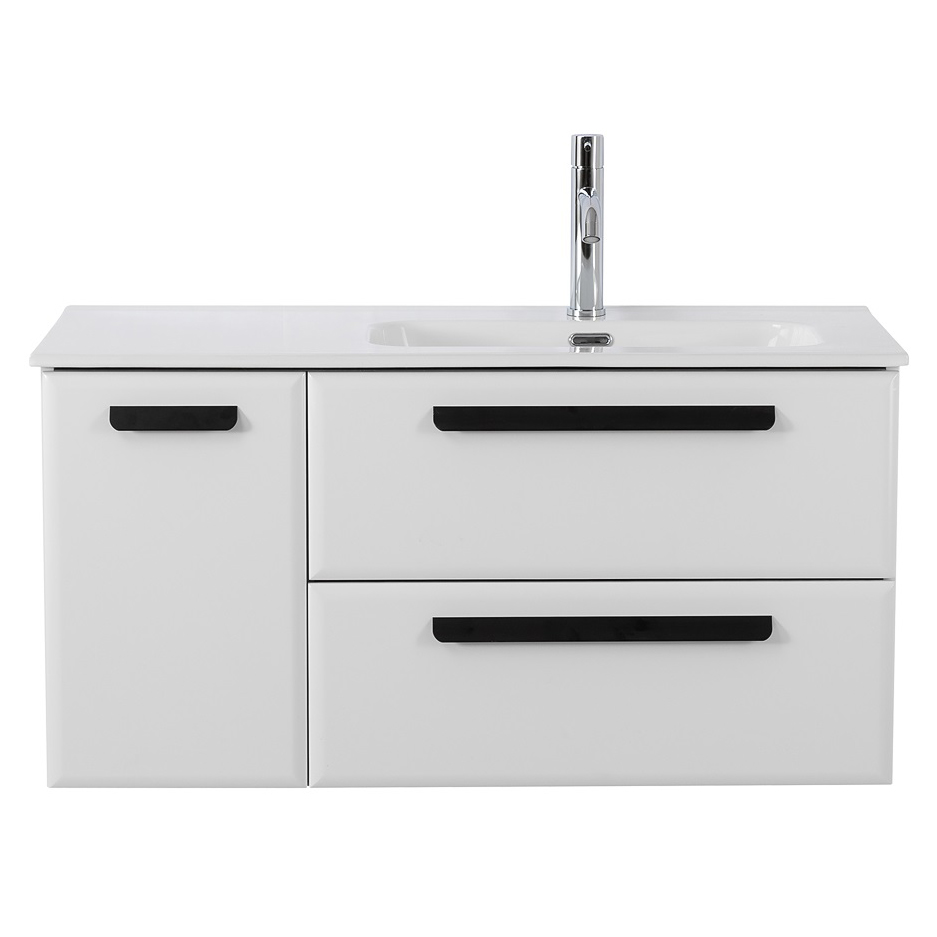 Тумба под раковину Cezares ECO-CER-N 100 см Bianco Lucido/ ручки разные ECO-CER-N-1000-2C-1A-SO-BL-L(R)