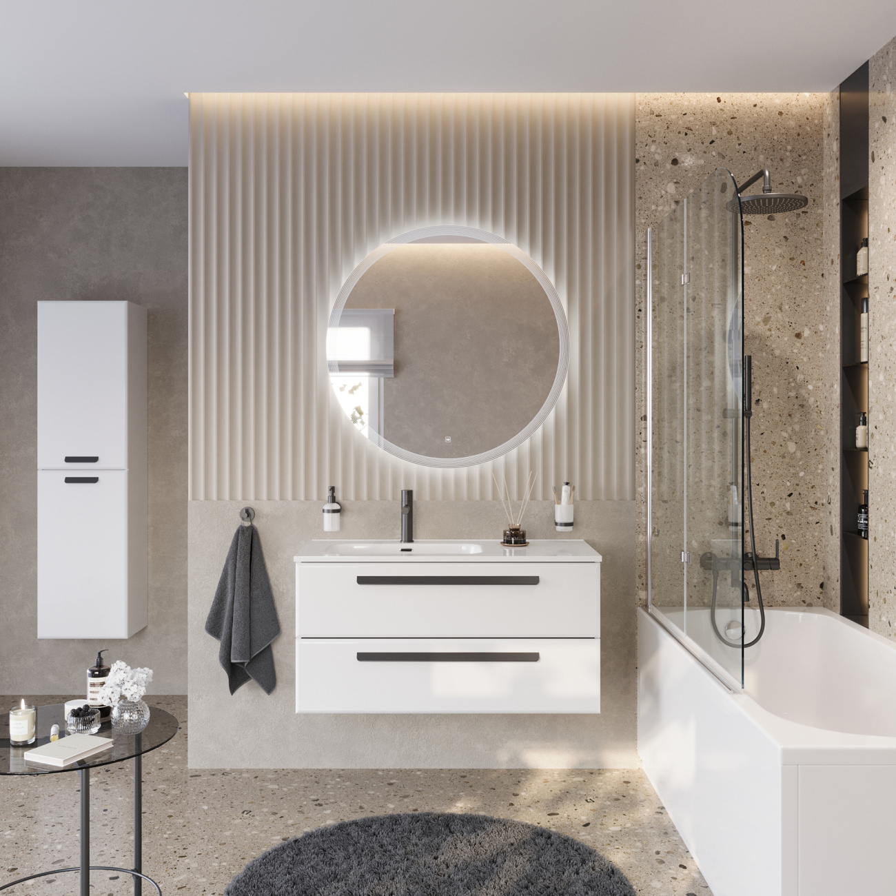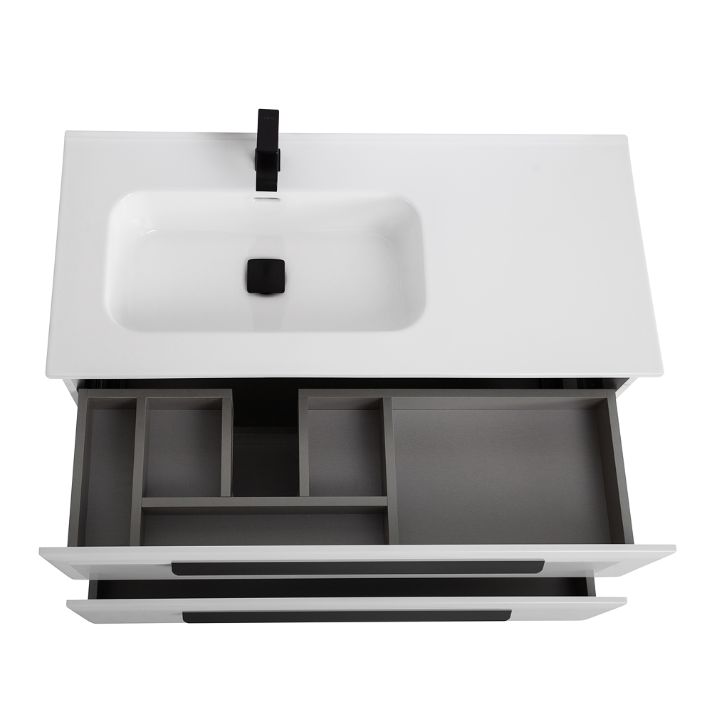 Тумба под раковину Cezares ECO-CER-N 100 см Bianco Lucido/ ручки разные ECO-CER-N-1000-2C-SO-BL-L(R)