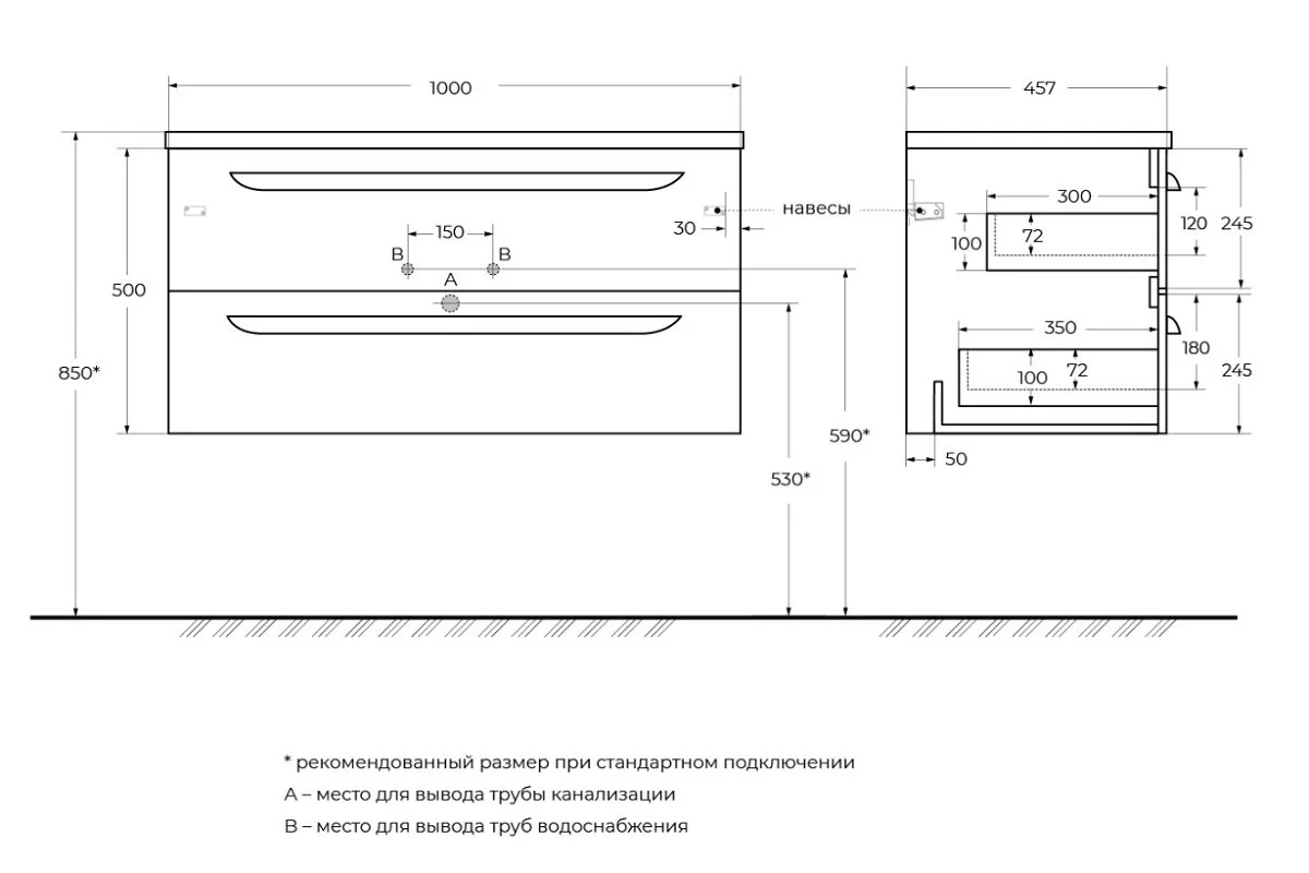 Тумба под раковину Cezares ECO-CER-N 100 см светло-зеленый матовый/ ручки разные ECO-CER-N-1000-2C-SO-VDO-P