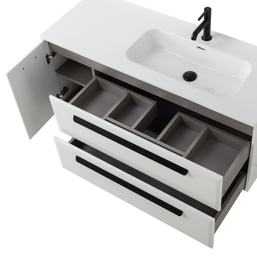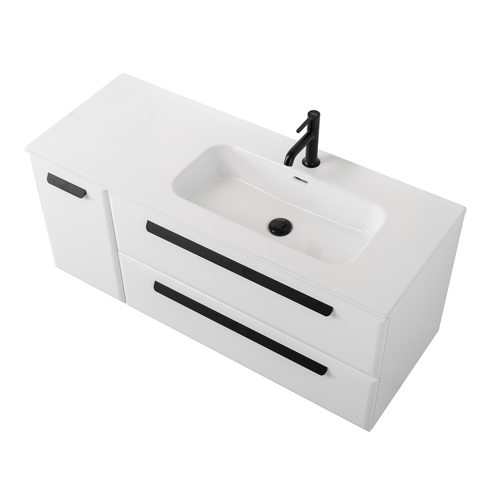 Тумба под раковину Cezares ECO-CER-N 120 см Bianco Lucido/ ручки разные ECO-CER-N-1200-2C-1A-SO-BL-L(R)
