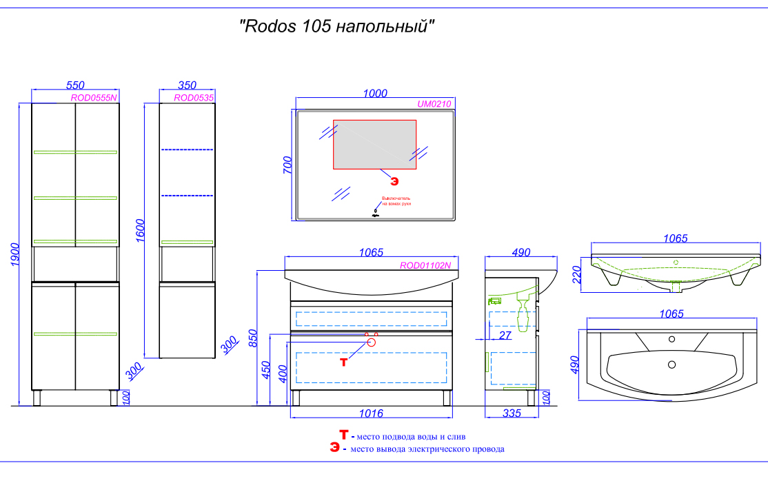Тумба под раковину напольная Aqwella Rodos 105 см ROD01102N