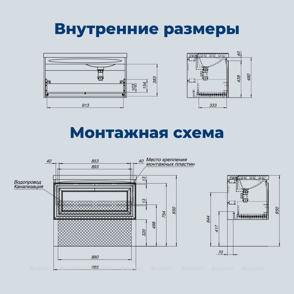 Внутренние детали выполнены из влагостойкой ЛДСП в цвете антрацит. Дно ящика сделано из прочной ЛДСП толщиной 16 мм. Ящик вместительный — его полезная высота составляет 380 мм. Задняя стенка уменьшена, но при этом отсутствует вырез под сифон, что увеличивает полезное пространство.