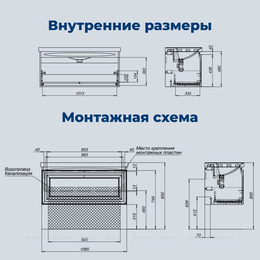Внутренние детали выполнены из влагостойкой ЛДСП в цвете антрацит. Дно ящика сделано из прочной ЛДСП толщиной 16 мм. Ящик вместительный — его полезная высота составляет 380 мм. Задняя стенка уменьшена, но при этом отсутствует вырез под сифон, что увеличивает полезное пространство.