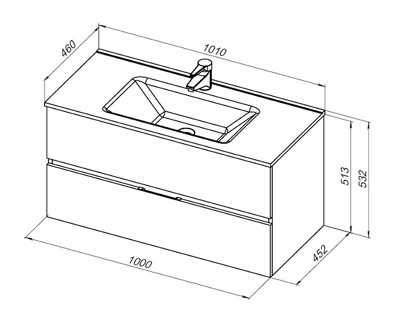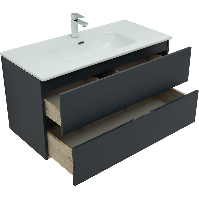 Тумба под раковину подвесная Aquanet Алвита NEW 100 см 2 ящ антрацит матовый 277519