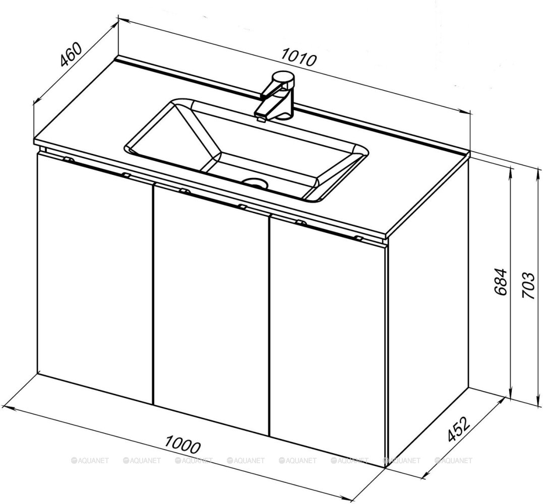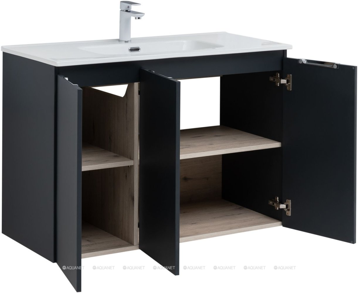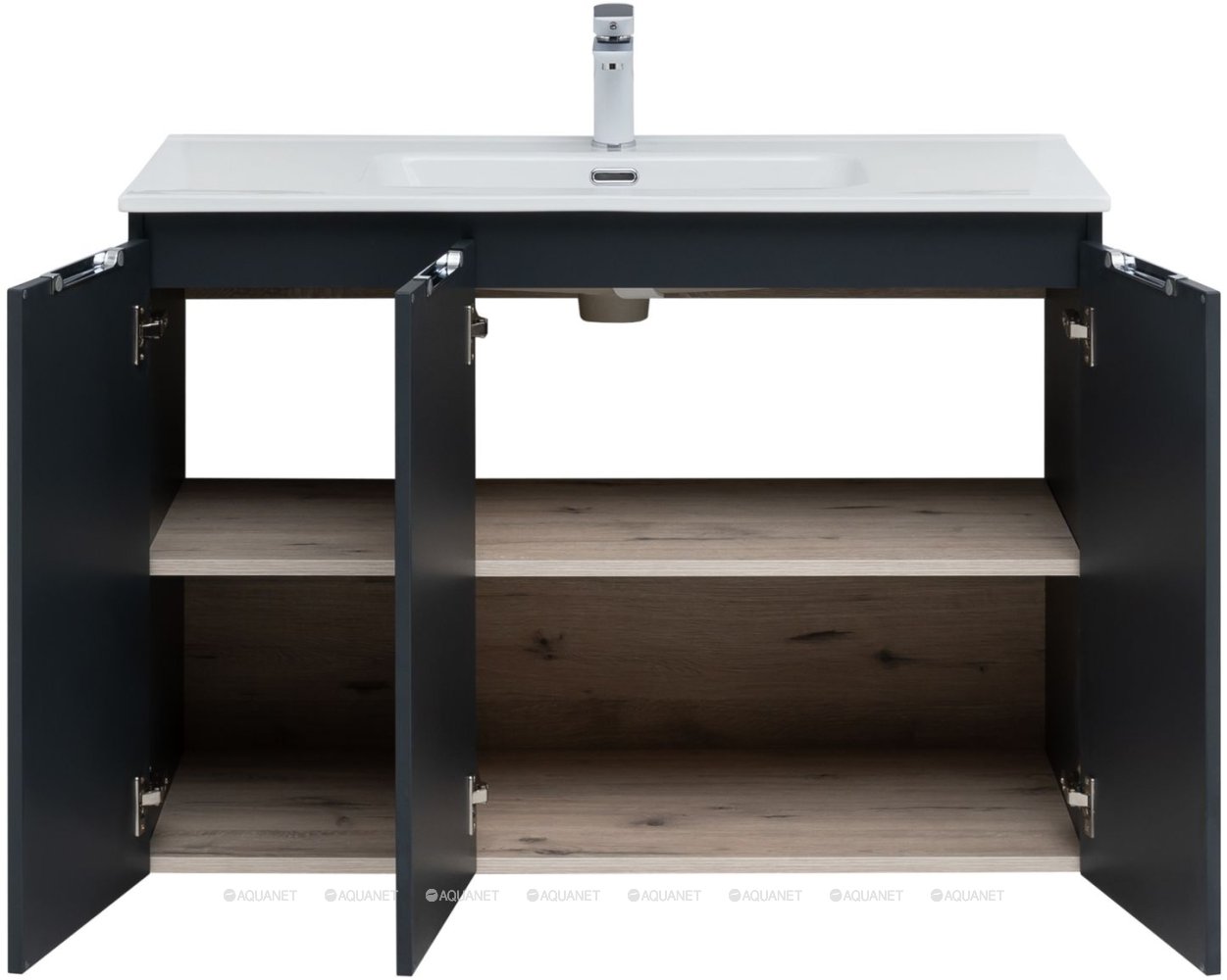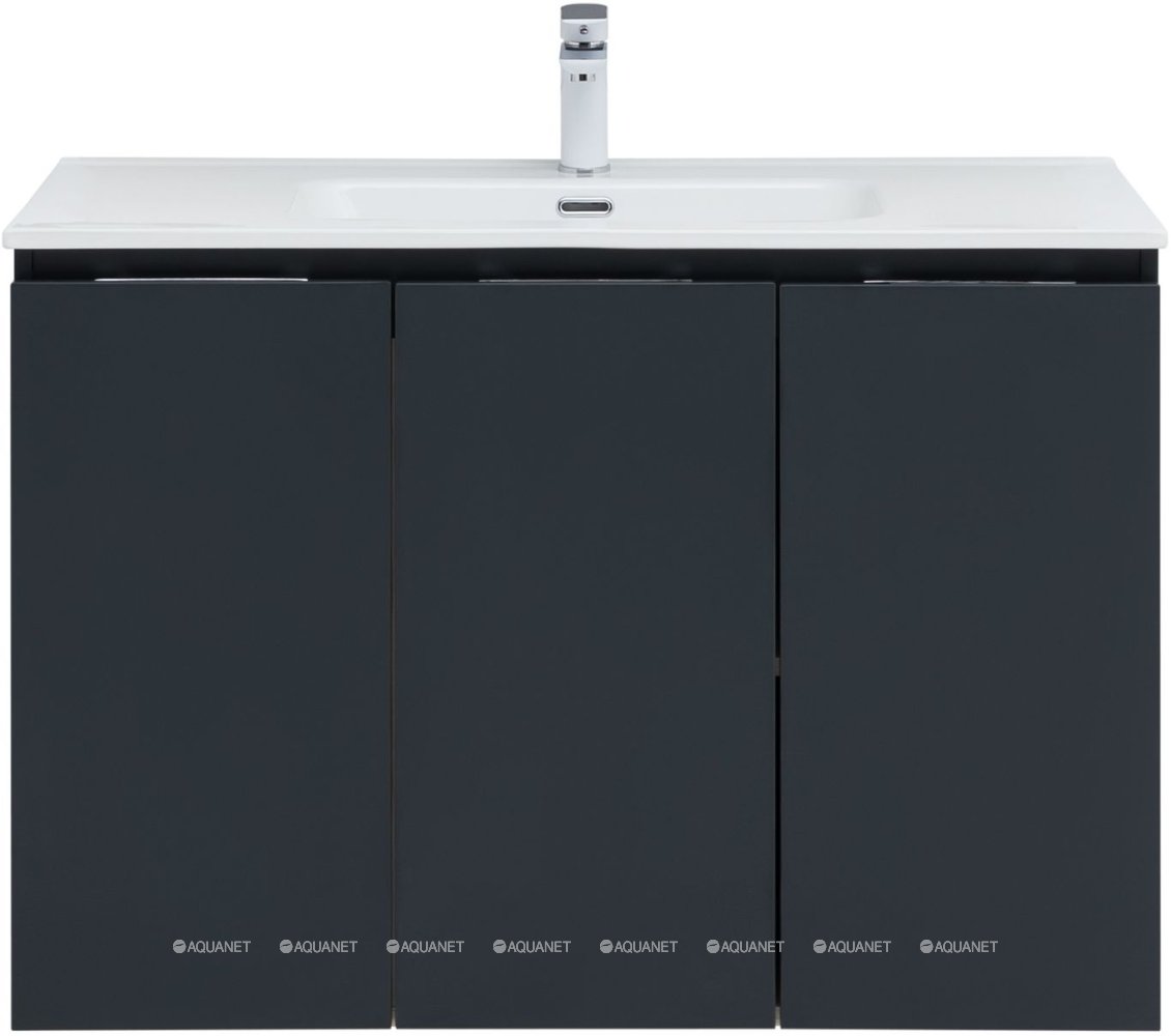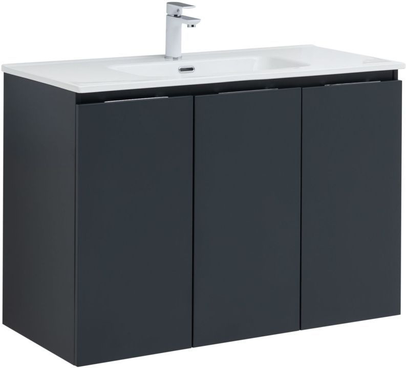 Тумба под раковину подвесная Aquanet Алвита NEW 100 см 3 дв антрацит матовый 277531