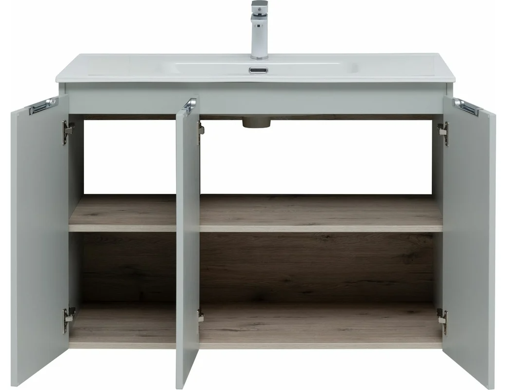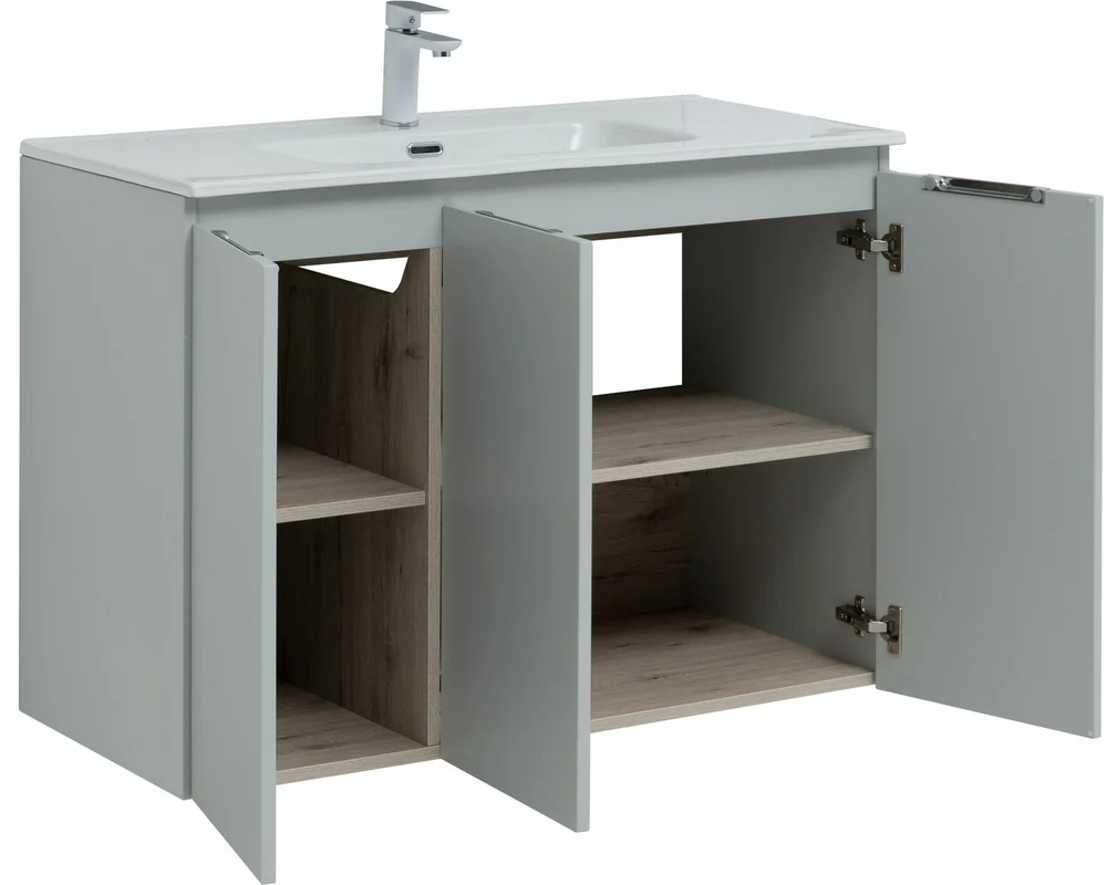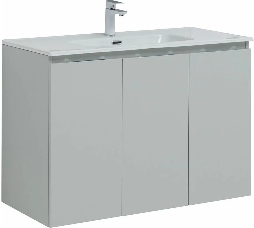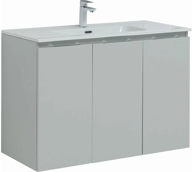 Тумба под раковину подвесная Aquanet Алвита NEW 100 см 3 дв серый матовый 277532