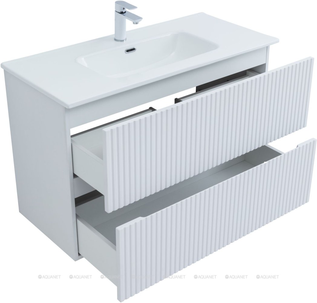 Тумба под раковину подвесная Aquanet Джейн (Flat) 100 см белый матовый 335426