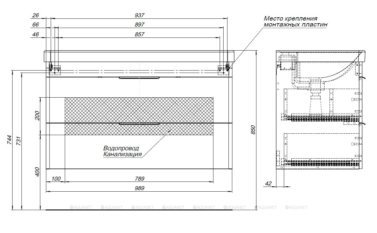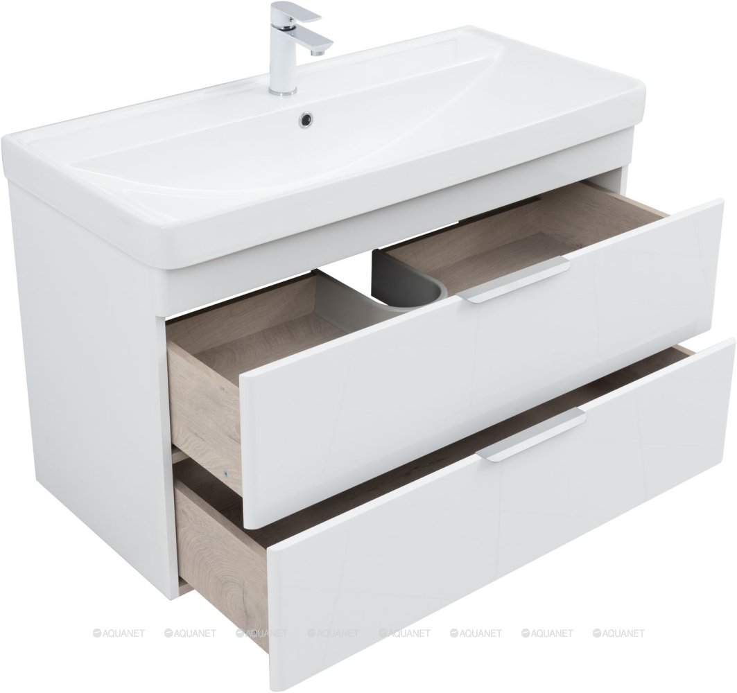 Тумба под раковину подвесная Aquanet Ирис NEW 100 см (2ящ) белый глянец 339280