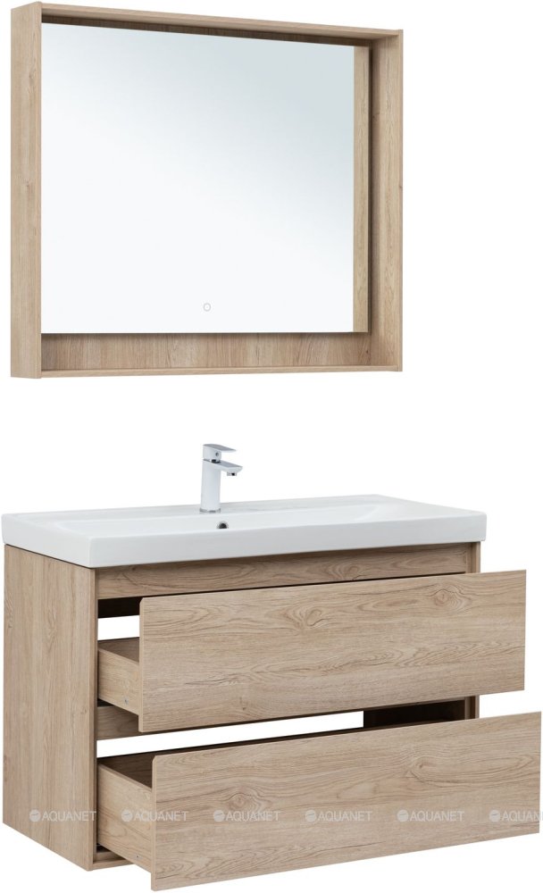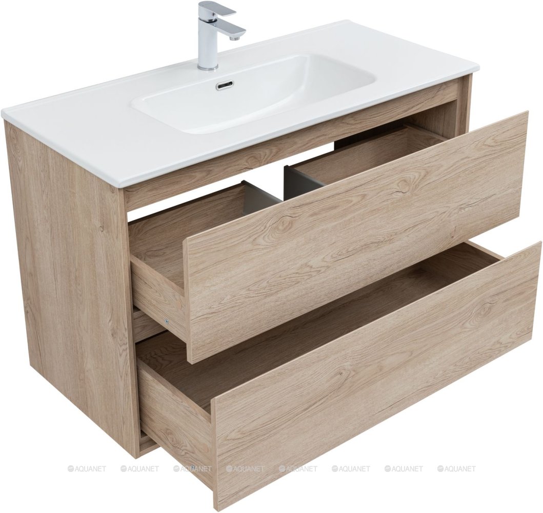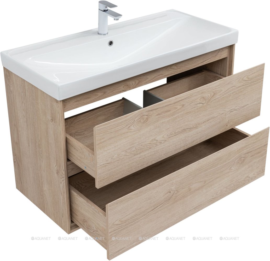 Тумба под раковину подвесная Aquanet Милан 100 см дуб светлый 336385