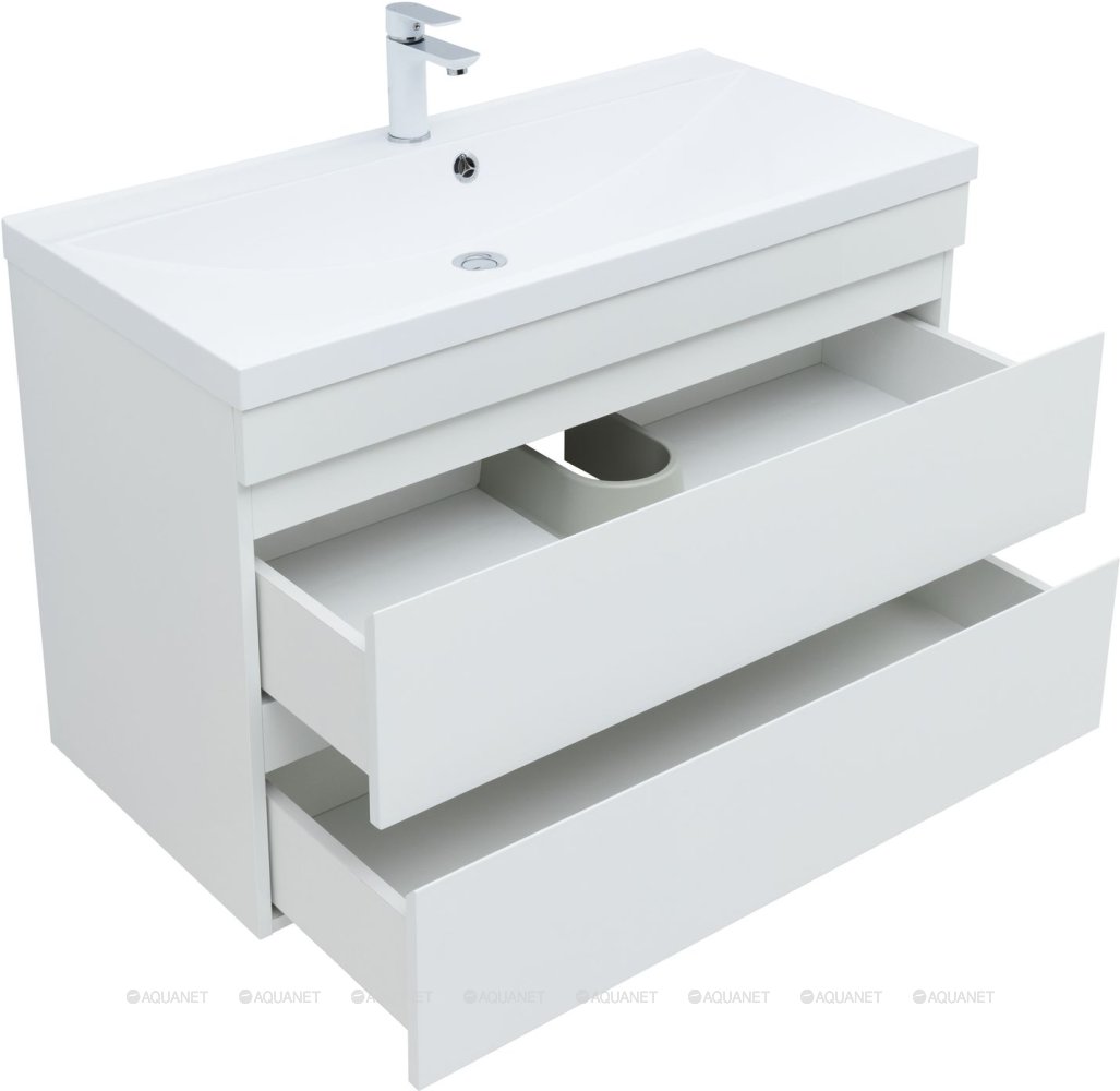 Тумба под раковину подвесная Aquanet Нота NEW 100 см белый глянец 335420