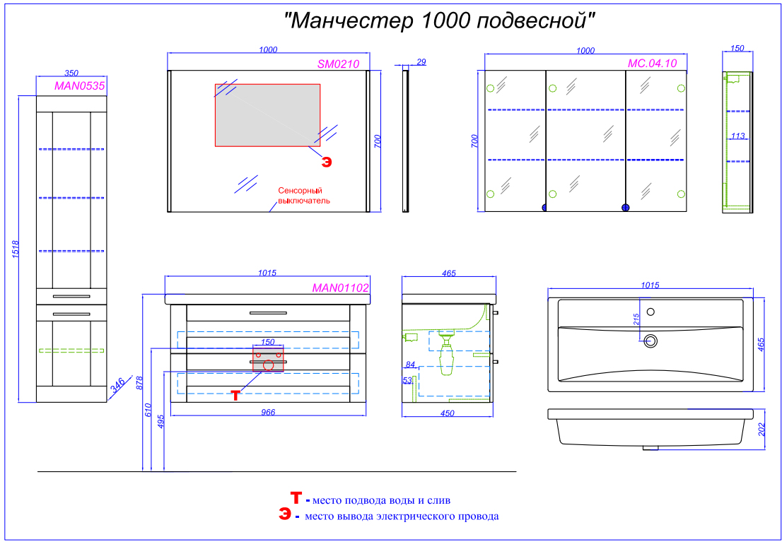 Тумба под раковину подвесная Aqwella Manchester 100 см MAN01102