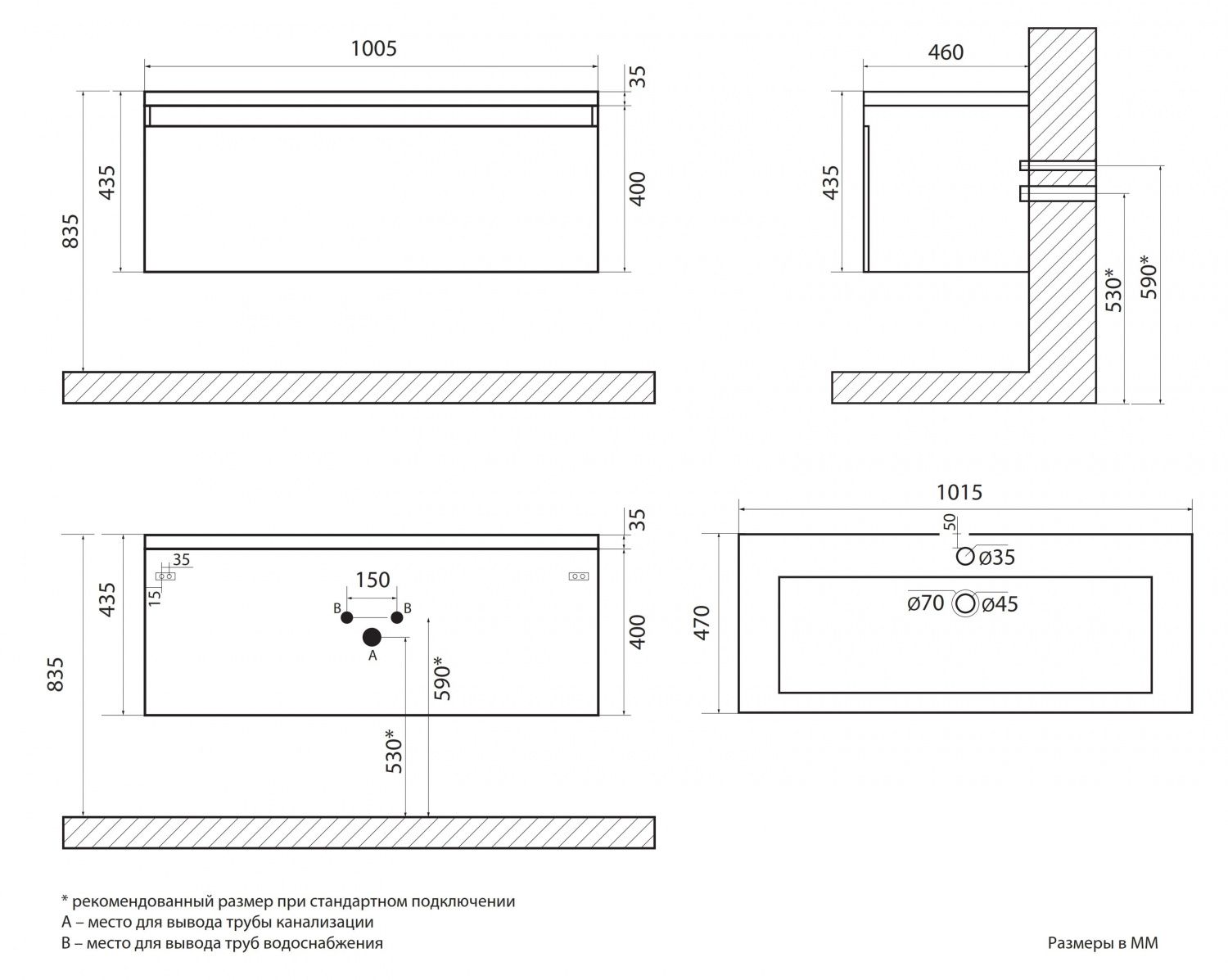 Тумба под раковину подвесная Art&Max Latina 100 см белый матовый AM-Latina-1000-1C-SO-BM