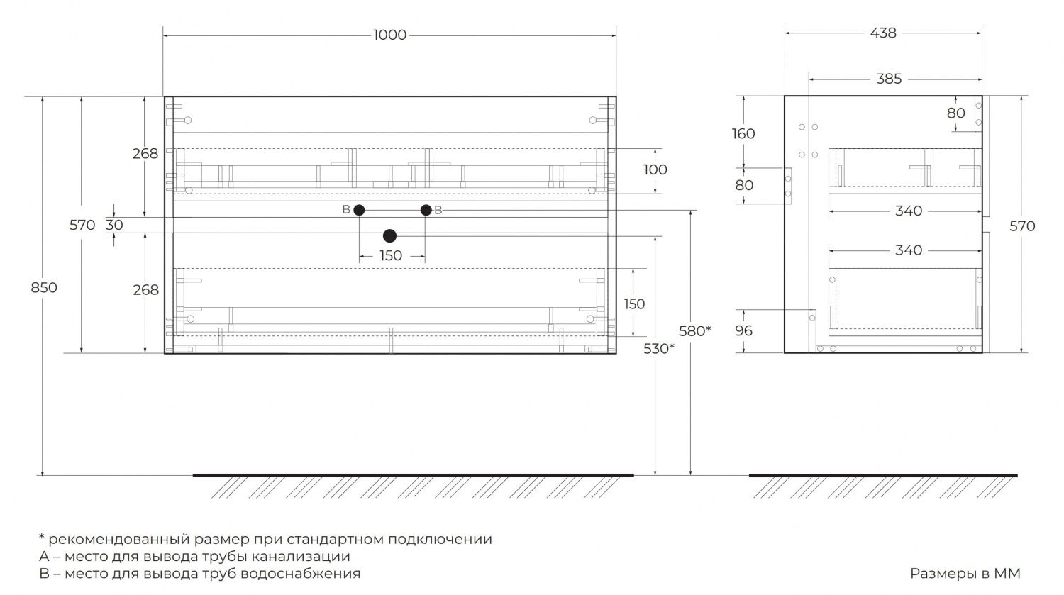 Тумба под раковину подвесная Art&Max Torino 100 см сапфир AM-TORINO-1000-2C-SO-SA-P