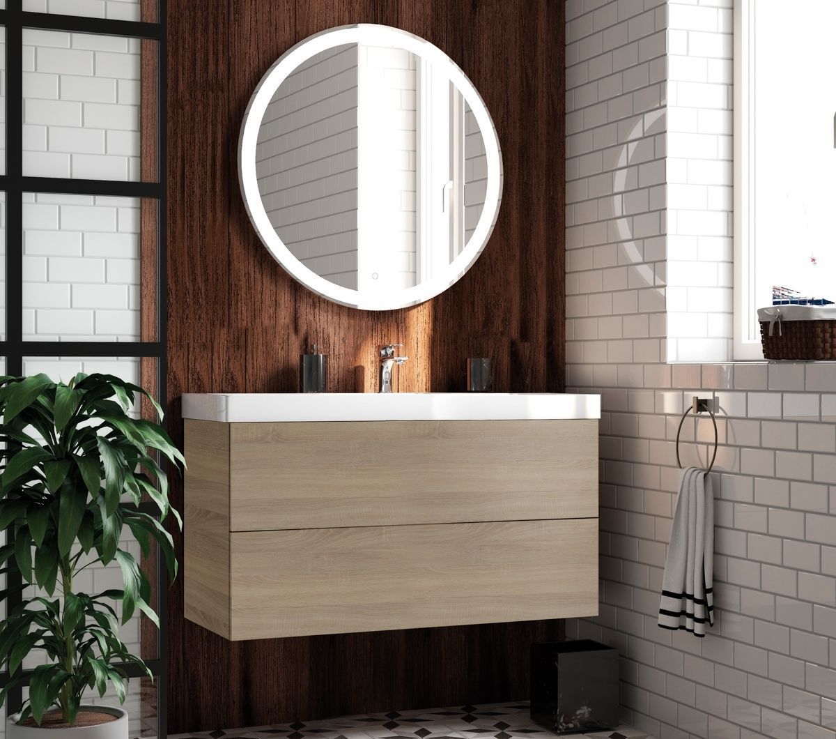 Тумба под раковину подвесная Art&Max Verona-Push 100 см дуб сонома светлый AM-Verona-Push-1000-2C-SO-RS-TS