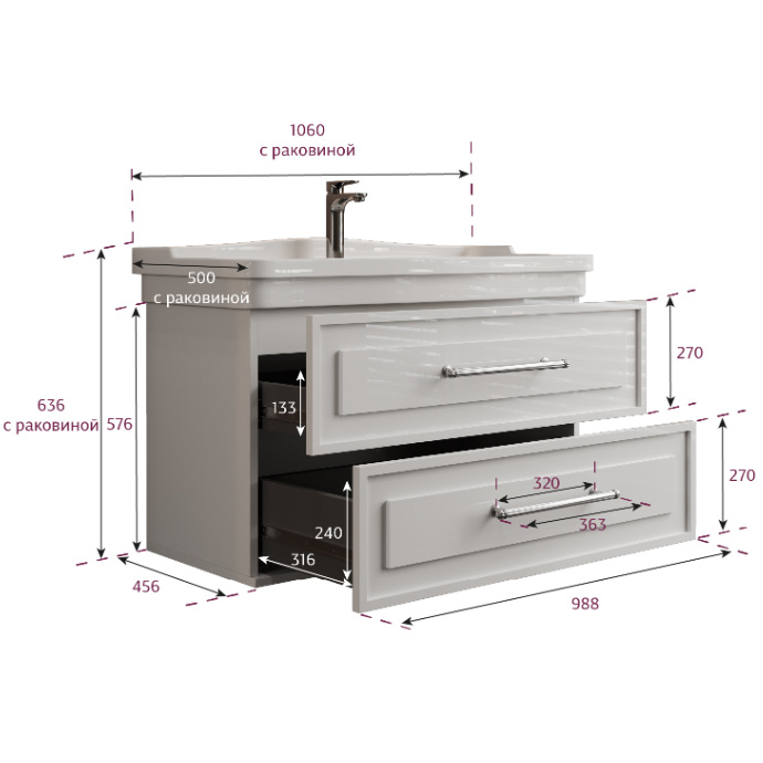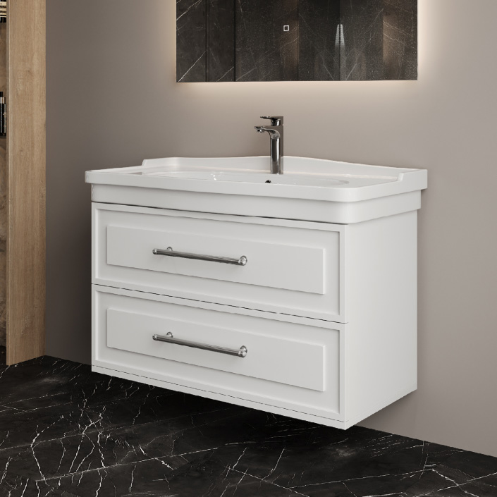 Прекрасная в своей индивидуальности подвесная тумба для ванной комнаты Onika Элисан 105 — беспроигрышный компромисс между красотой и функциональностью, классической внешностью и современным содержанием.