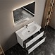 Тумба выполнена из МДФ и покрыта стойкой глянцевой эмалью, устойчивой к механическим воздействиям, перепадам температур и высокой влажности.
