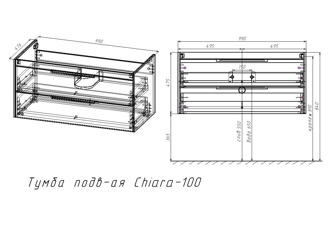 Тумба под раковину подвесная Vincea Chiara 2D 100 см C.Oak VMC-2C2100CO