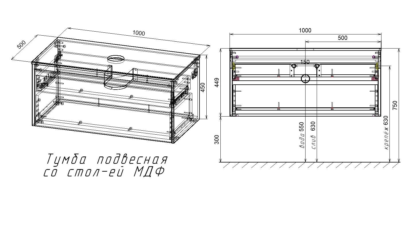 Тумба под раковину подвесная Vincea Mesa 100 см T.Oak/Beton VMC-2MS100TB
