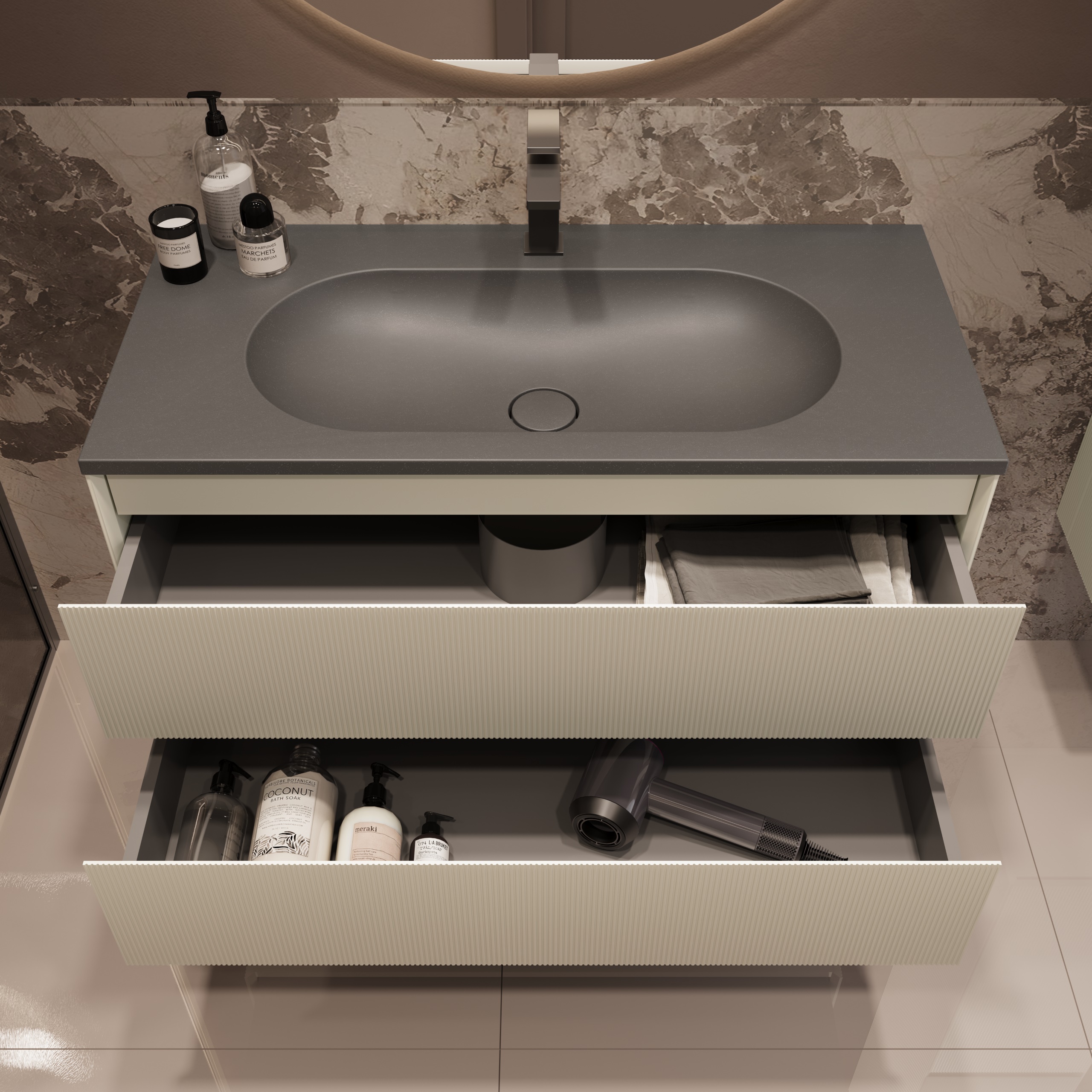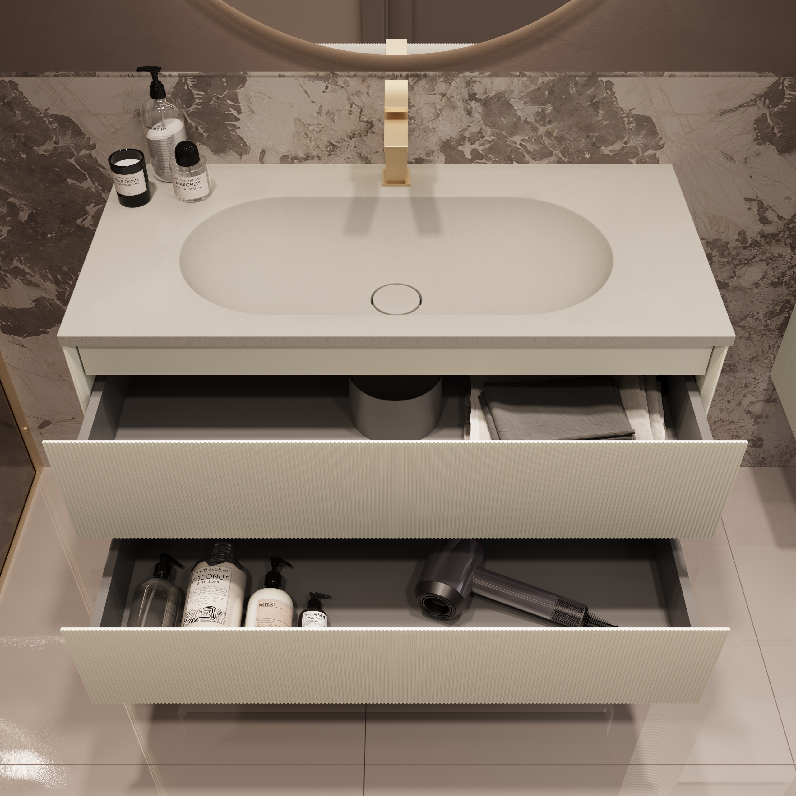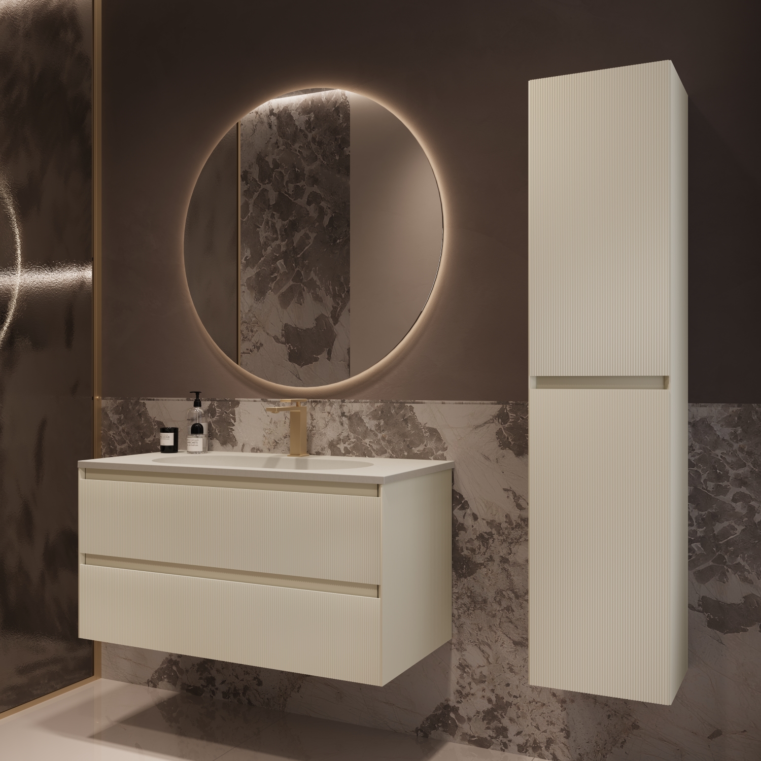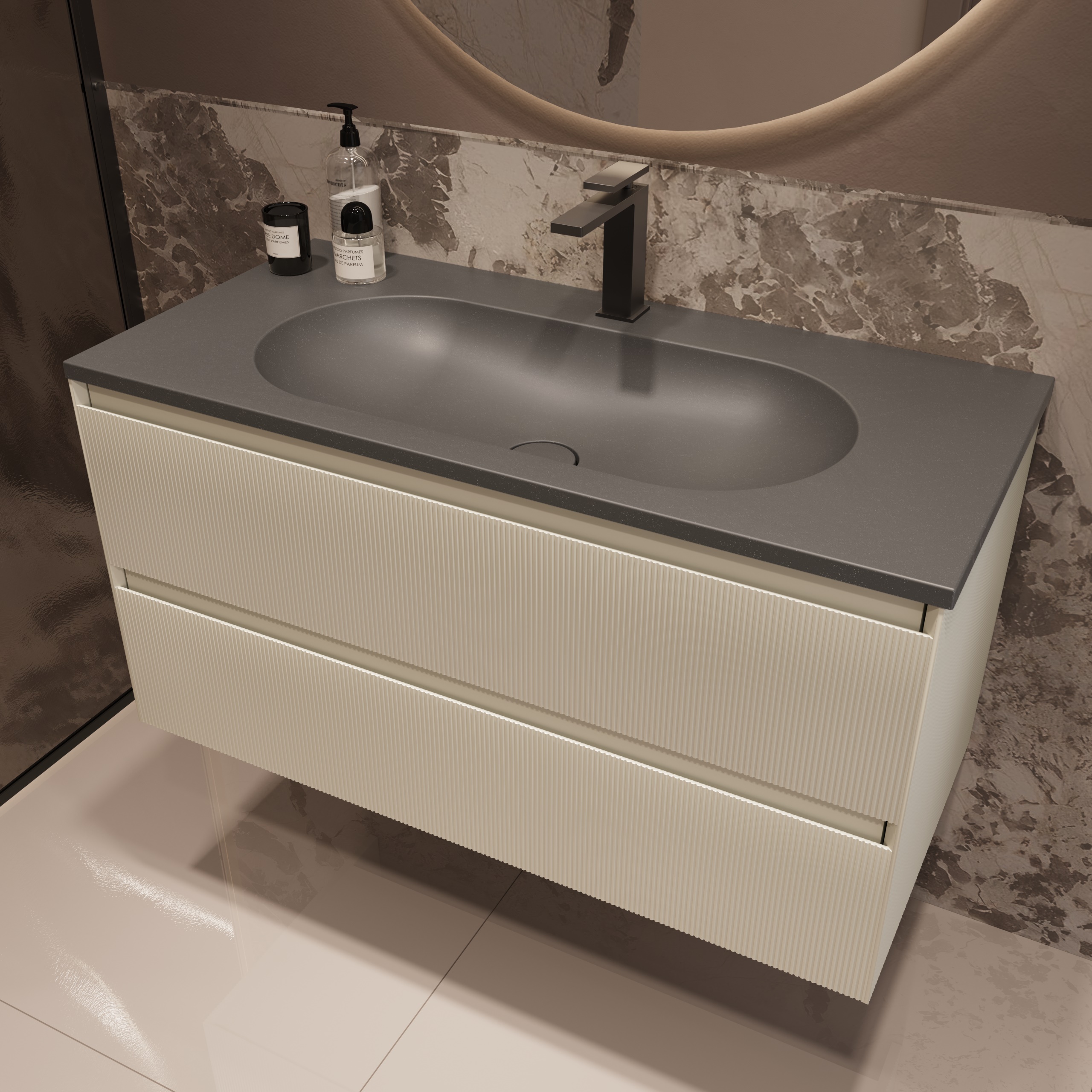 Тумба под раковину подвесная Vincea Welle 100 см M.Beige Soft-touch VMC-2WL100MBG