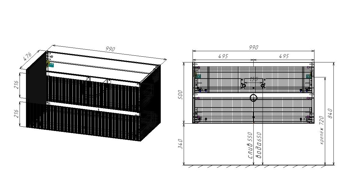 | Система хранения | 2 выкатных ящика |