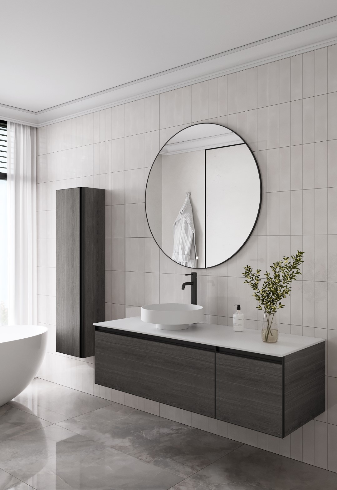 Тумба под раковину/ столешницу Armadi Art Quatro M2 120 (80+40) см OAK ANTHRACITE профиль ANTHRACITE 790-M2-120-OA-A
