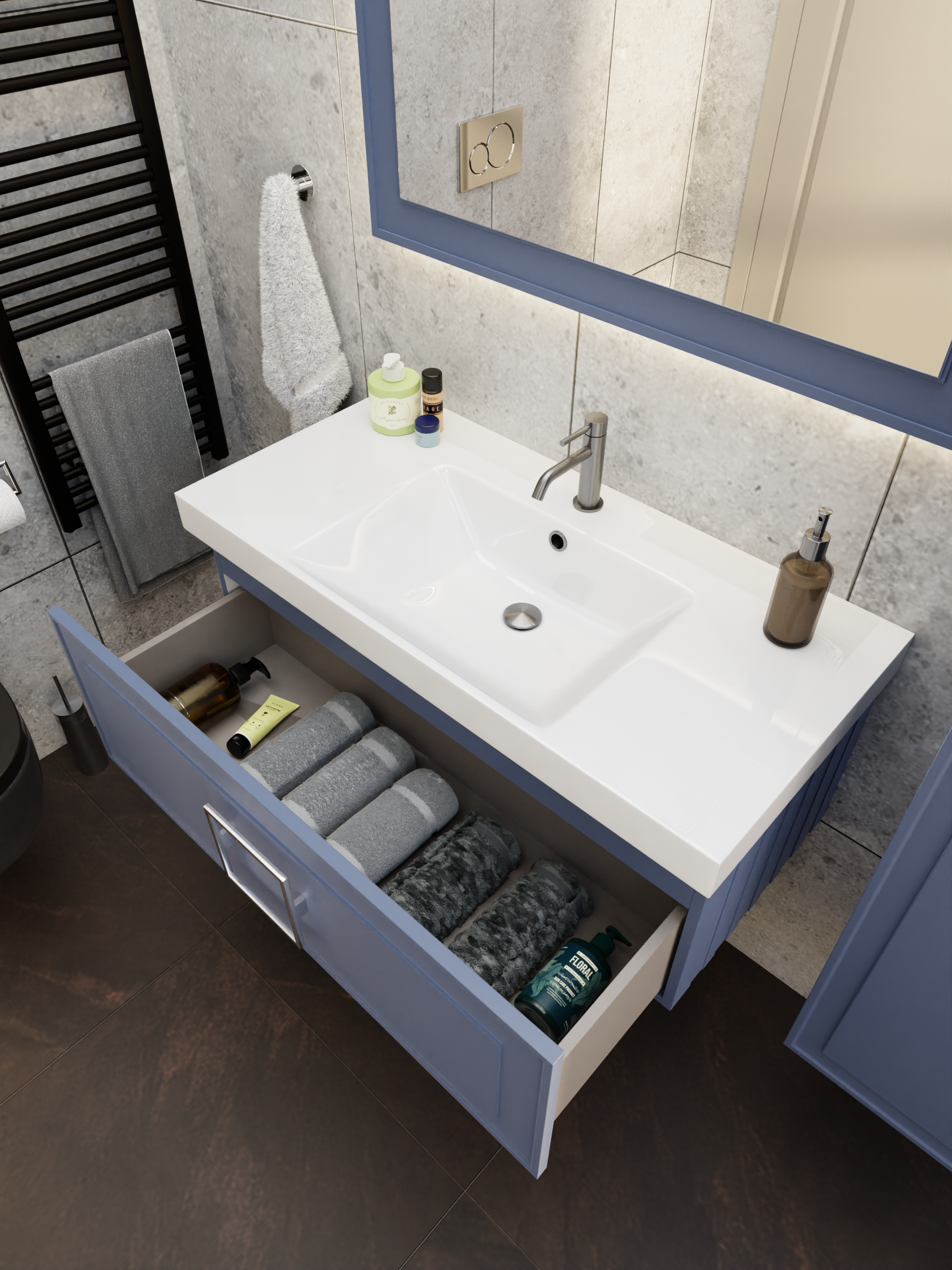 Тумба под раковину/ столешницу подвесная La Fenice Cubo 100 см синий FNC-01-CUB-BG-100