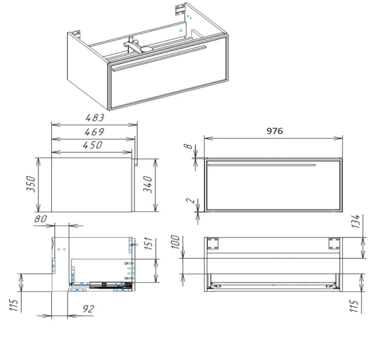 Скрытые доводчики SAMET (Турция) плавного закрывания частичного выдвижения, подвесной регулируемый механизм Camar (Италия).