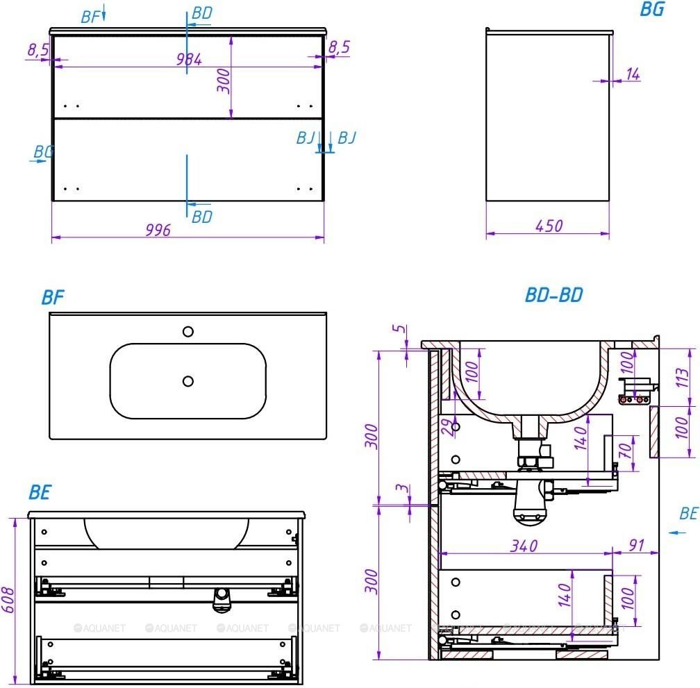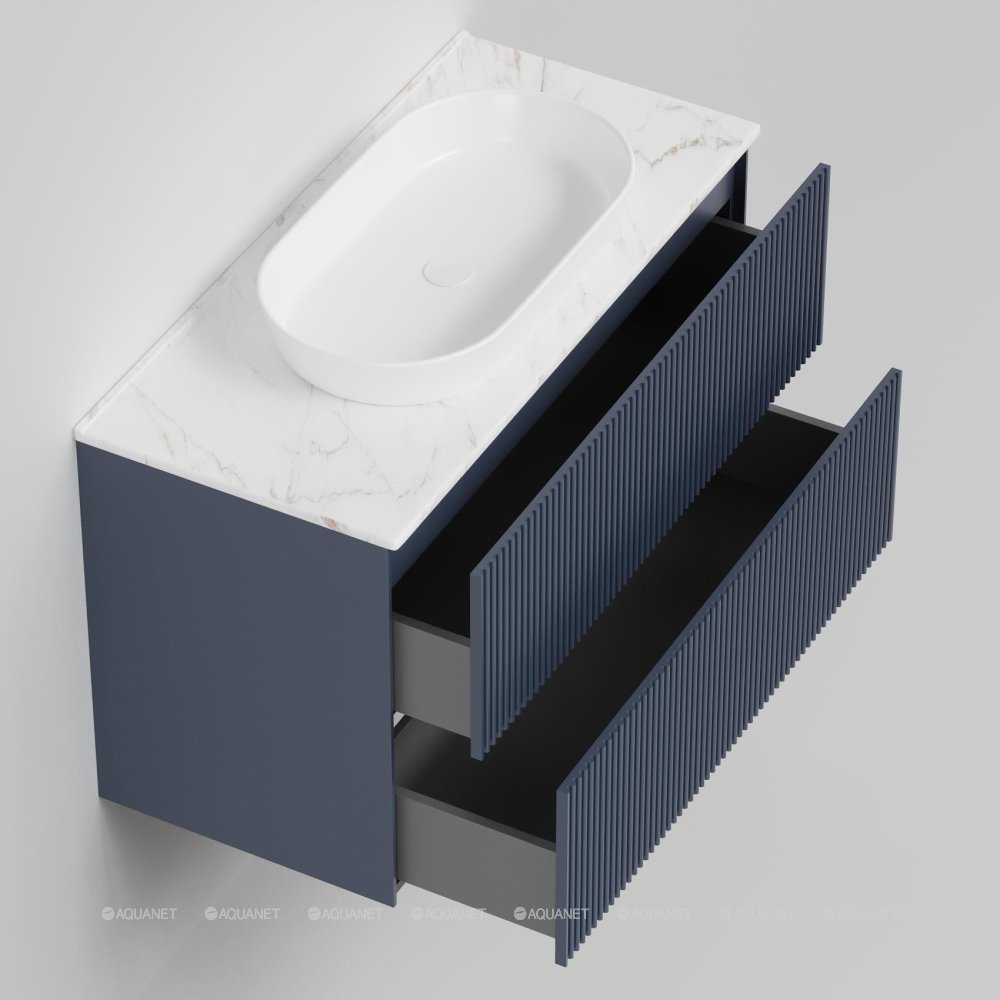 Тумба под раковину/ столешницу подвесная La Fenice Terra Twin 100 см синий FNC-01-TER-BG-100-2