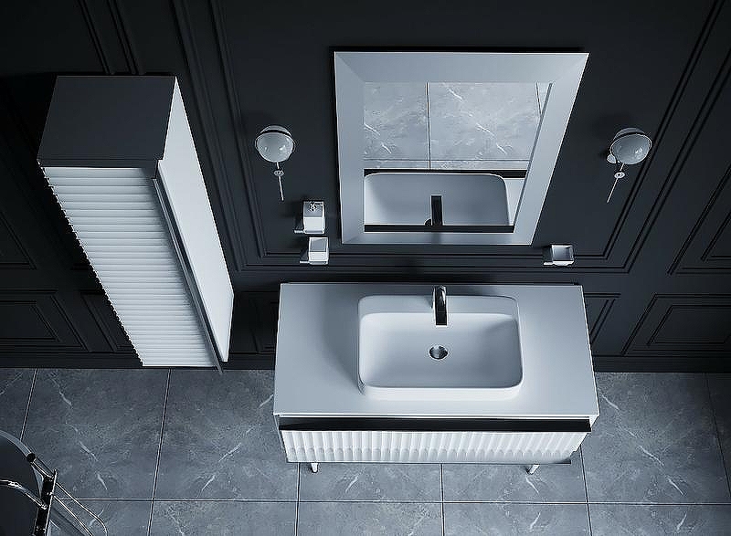выбрать ультратонкую керамическую раковину-моноблок (глянцевую/перламутровую белую или глянцевую/матовую черную) или прямую столешницу, изготовленную из передового материала High-performance gelcoat. Эти столешницы обладают интересной фактурой и при этом очень износостойки и удобны в уходе. На прямые столешницы могут быть установлены дизайнерские керамические раковины-чаши с тонкими бортами. Размерный ряд тумб 80 см, 100 см, 120 см. Рифленые фасады тумб выполнены из МДФ с ультраглянцевым акриловым покрытием High-Pressure Membrane Coating от известного производителя LG. В коллекции использована фурнитура от лидера рынка Hettich. Дно ящиков отделано эко-кожей с фирменным стежком. По желанию заказчик может укомплектовать тумбу изящными ножками из массива дерева, покрытые рояльным лаком, и предать тумбам утонченный стиль.