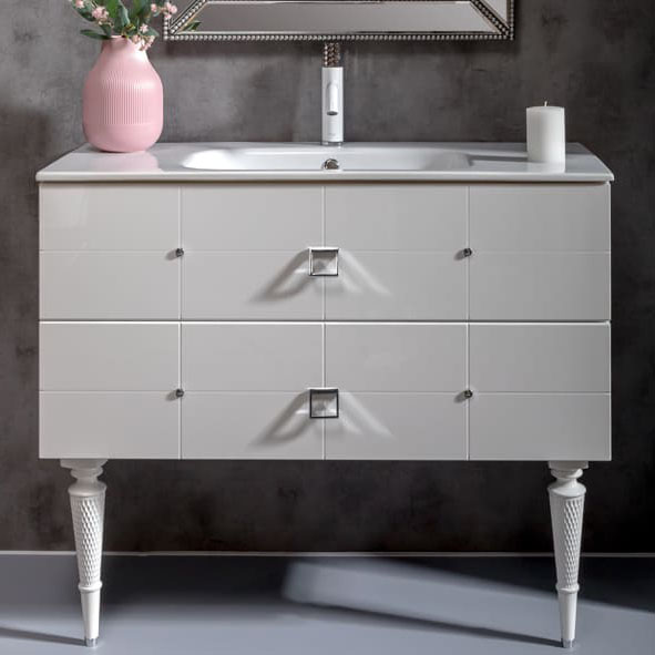 Тумба под раковину/ столешницу подвесная/напольная Armadi Art Piazza 100 см белый/хром 841-100-WCR
