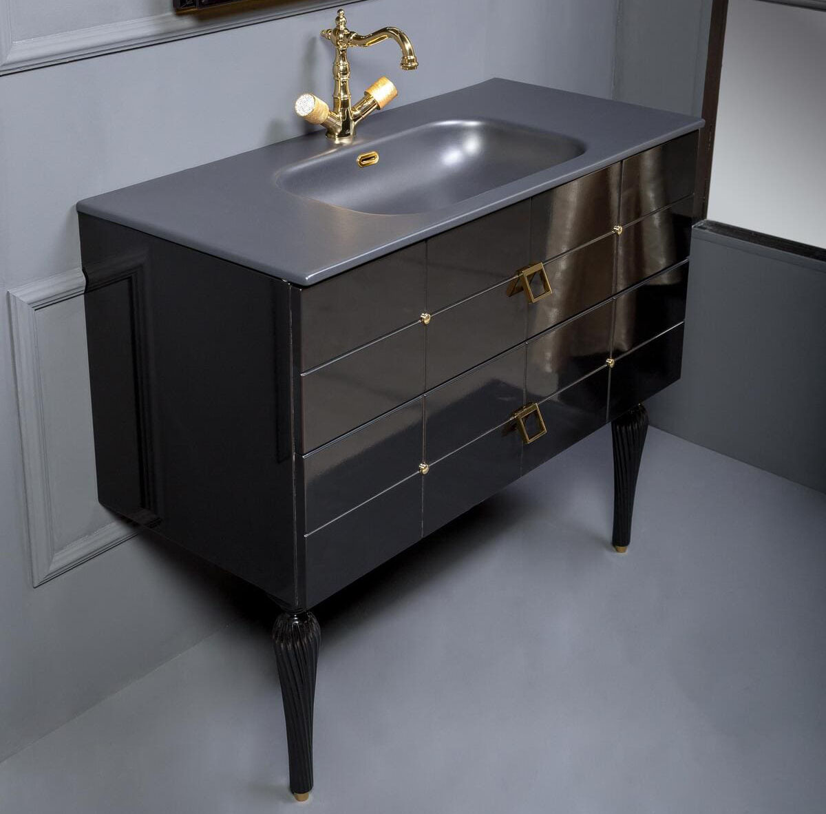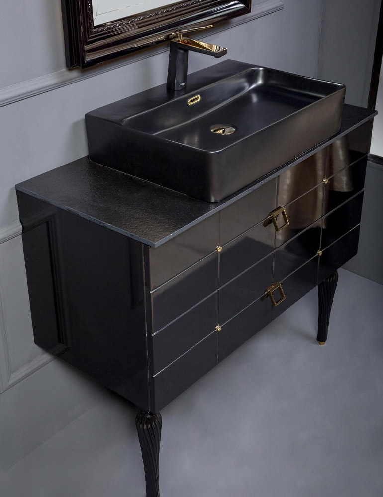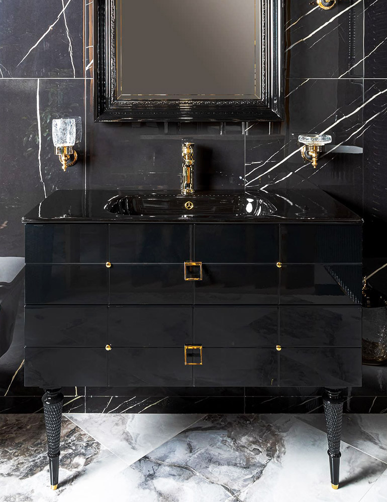 Тумба под раковину/ столешницу подвесная/напольная Armadi Art Piazza 100 см черный/золото 841-100-BG