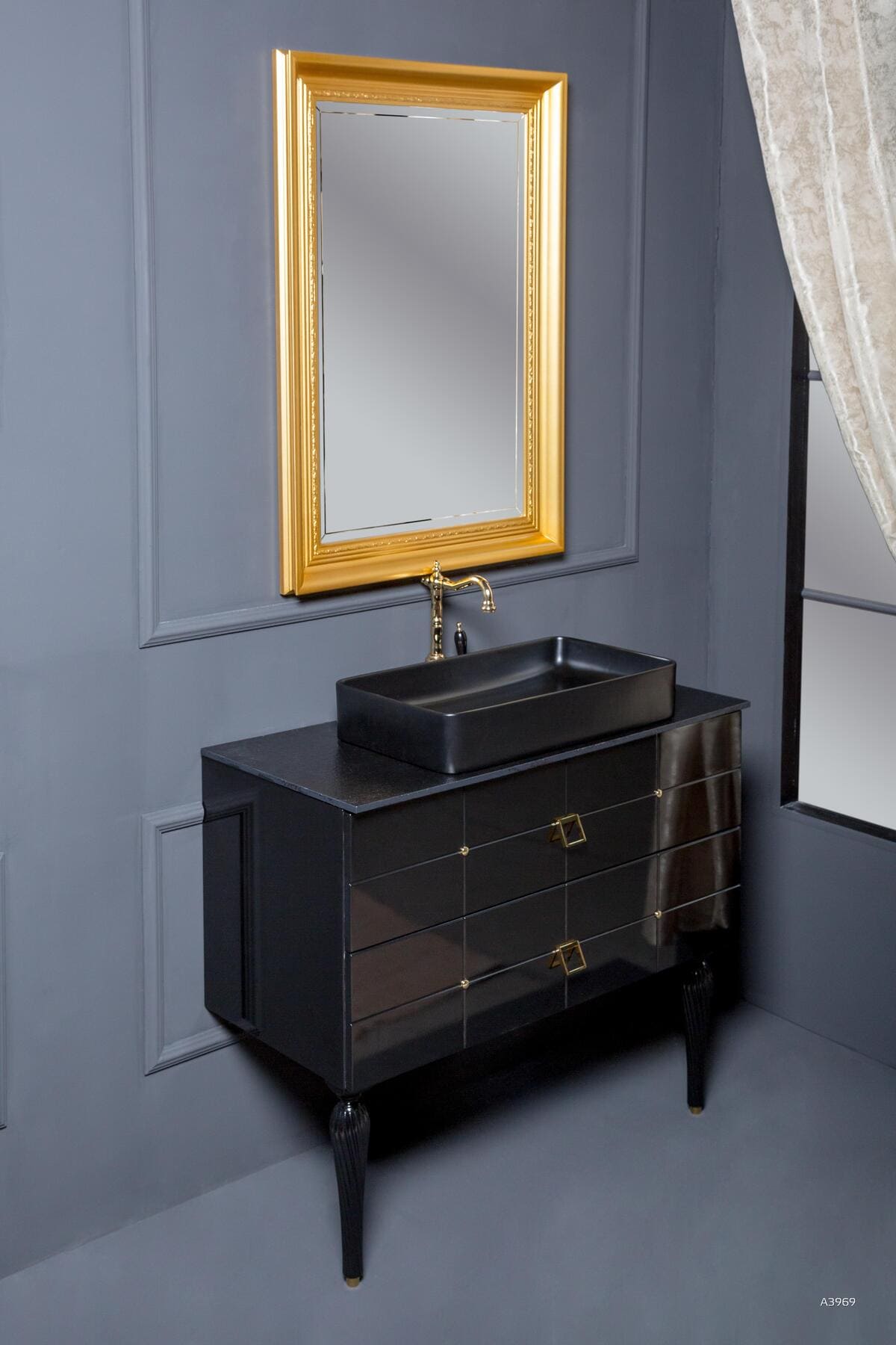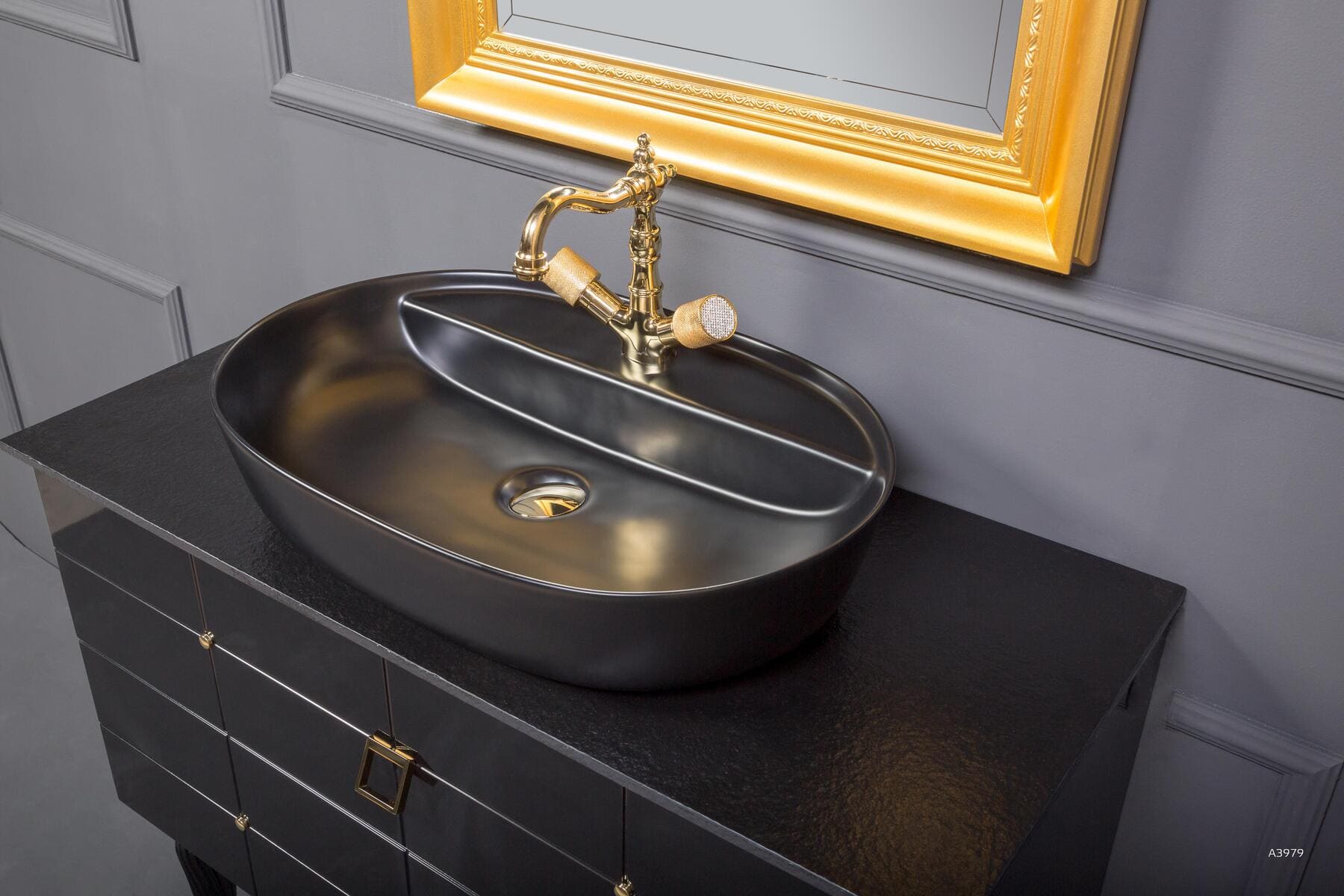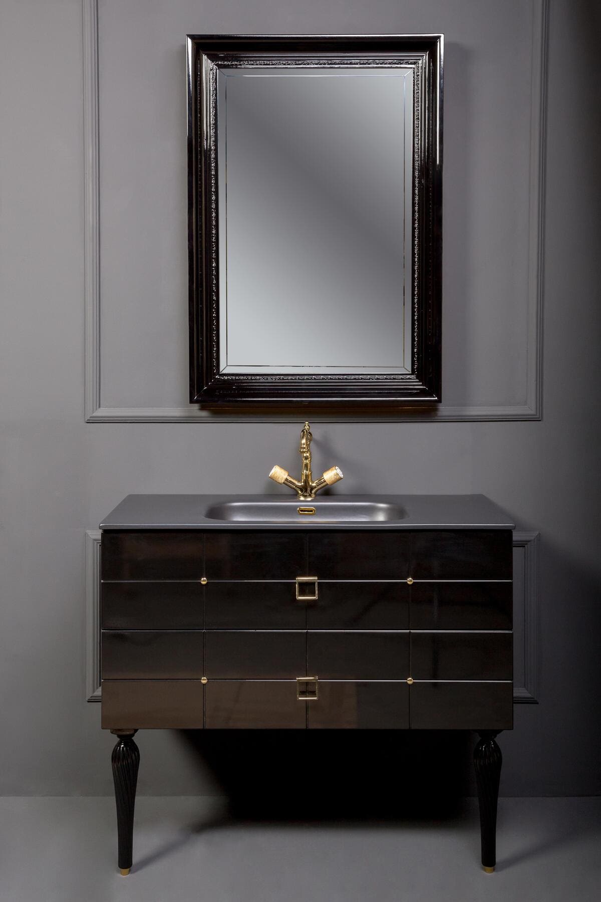 Тумба под раковину/ столешницу подвесная/напольная Armadi Art Piazza 100 см черный/золото 841-100-BG