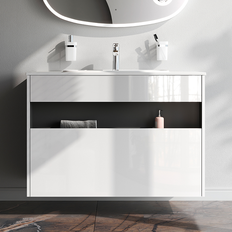 Тумба под раковину/ столешницу с нишей AM.PM Func 100 1ящ белый глянец M8FFUX1001WG