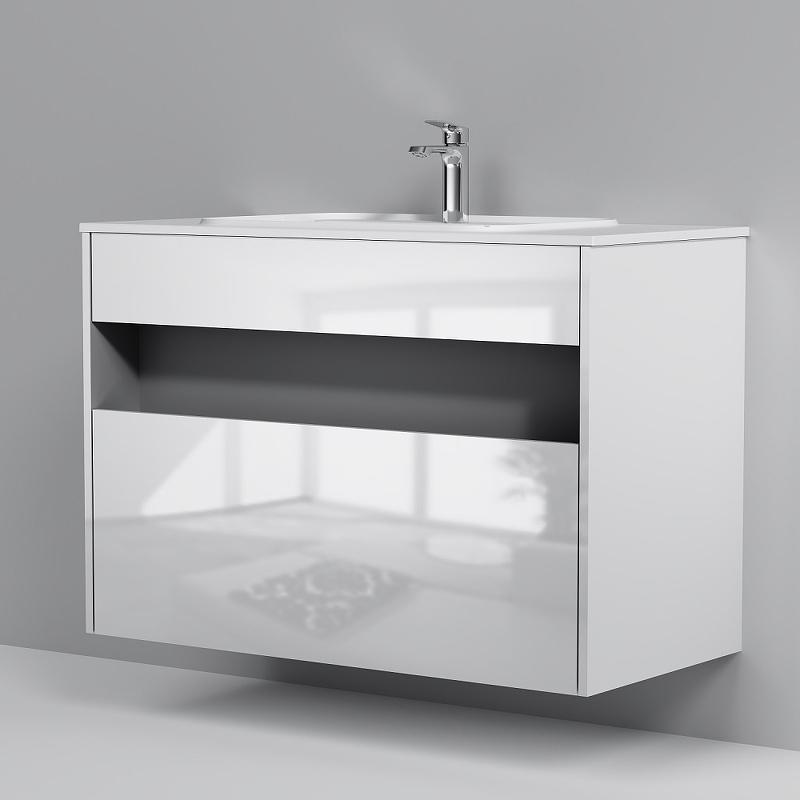 - Тумба под раковину/ столешницу с нишей AM.PM Func 100 1ящ белый глянец M8FFUX1001WG