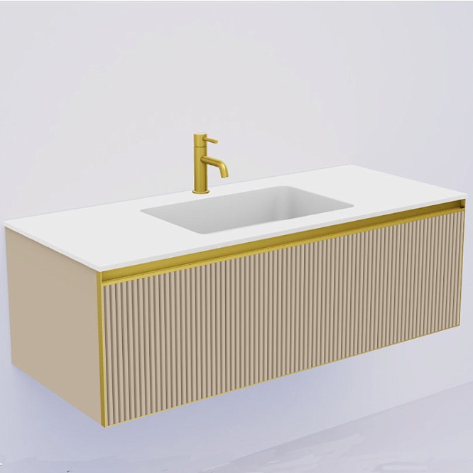 Тумба под раковину/ столешницу с подсветкой Armadi Art Quatro M1 120 см рифл DAPHNE профиль MATT GOLD 790-M1-120-RIB-D-MG-LED