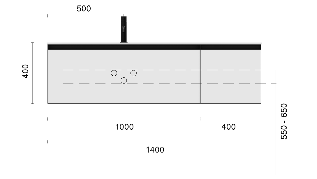 Тумба под раковину/ столешницу с подсветкой Armadi Art Quatro M2 140 (100+40) см DAPHNE профиль ANTHRACITE 790-M2-140-D-A-LED