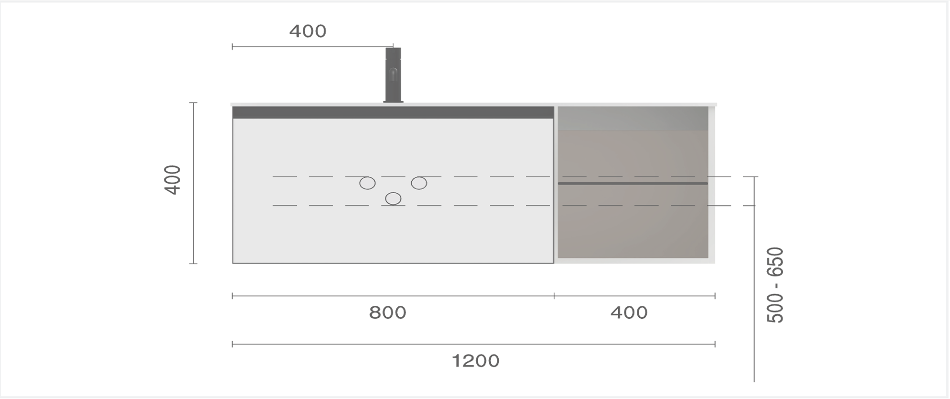 Тумба под раковину/ столешницу с подсветкой Armadi Art Quatro M6 120 (80+40) см ANTHRACITE профиль ANTHRACITE 790-M6-120-A-A-LED