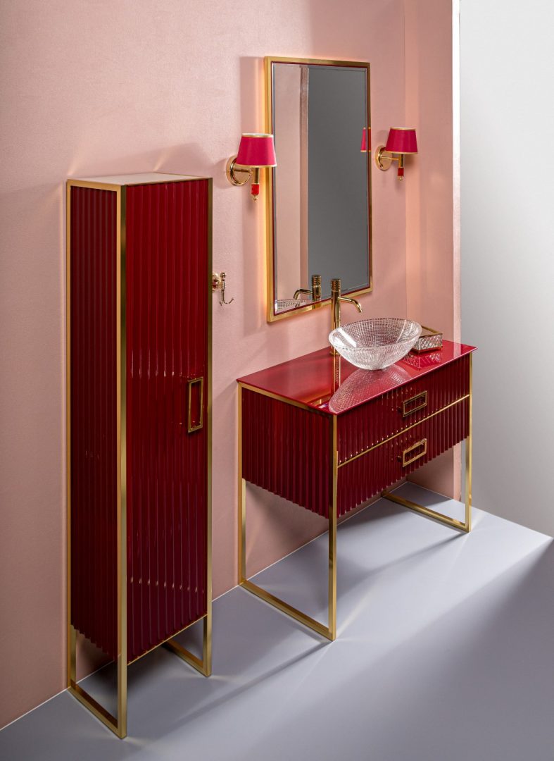 Тумба под столешницу Armadi Art Mónaco 100 см бордо глянец/золото 867-100-RG