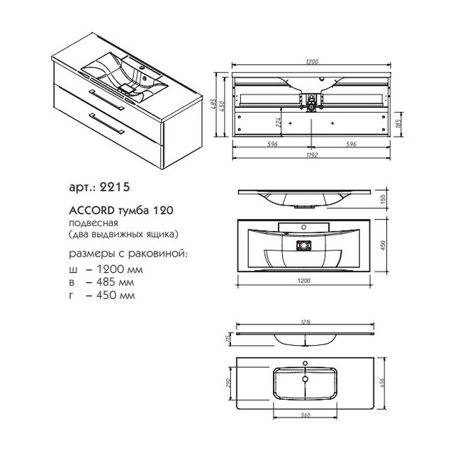Тумба под раковину Caprigo Accord 120 см 2215 цвета разные