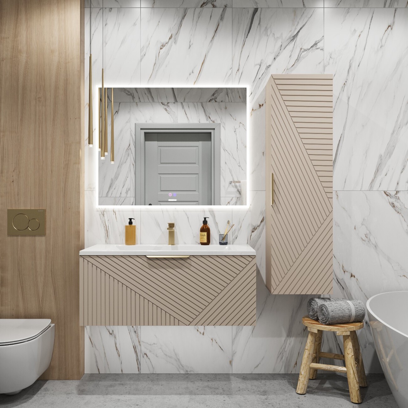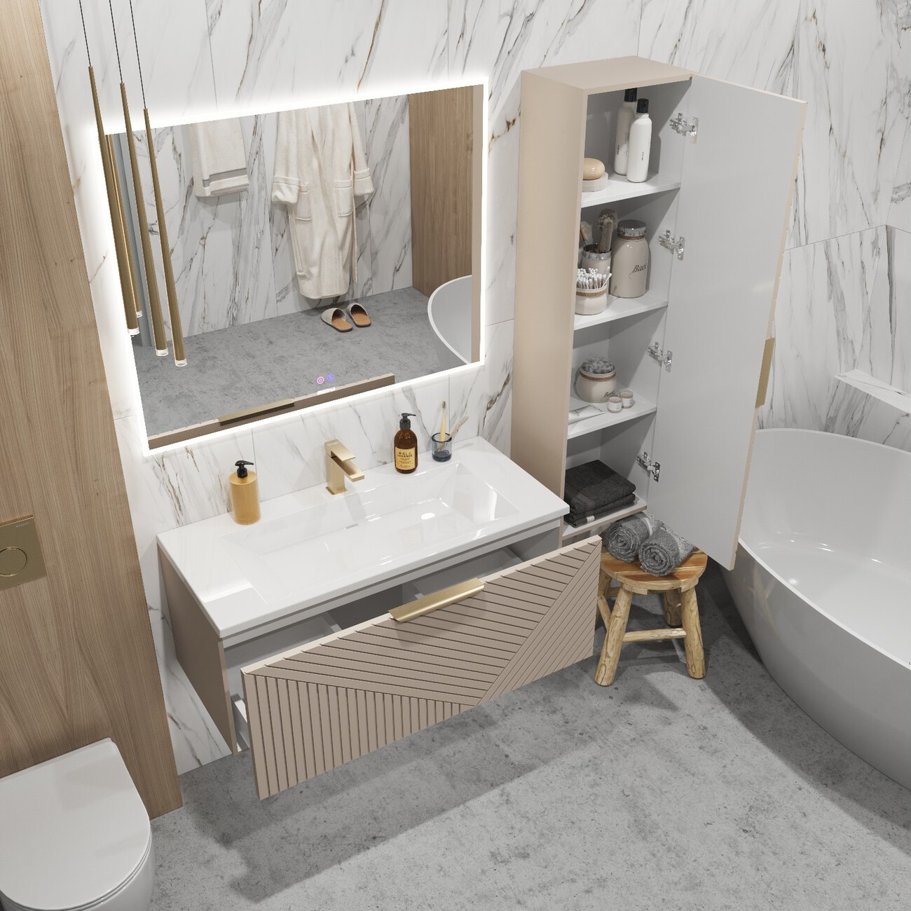 Тумба подвесная под раковину Grossman Блисс 100 см бежевый матовый 1010049